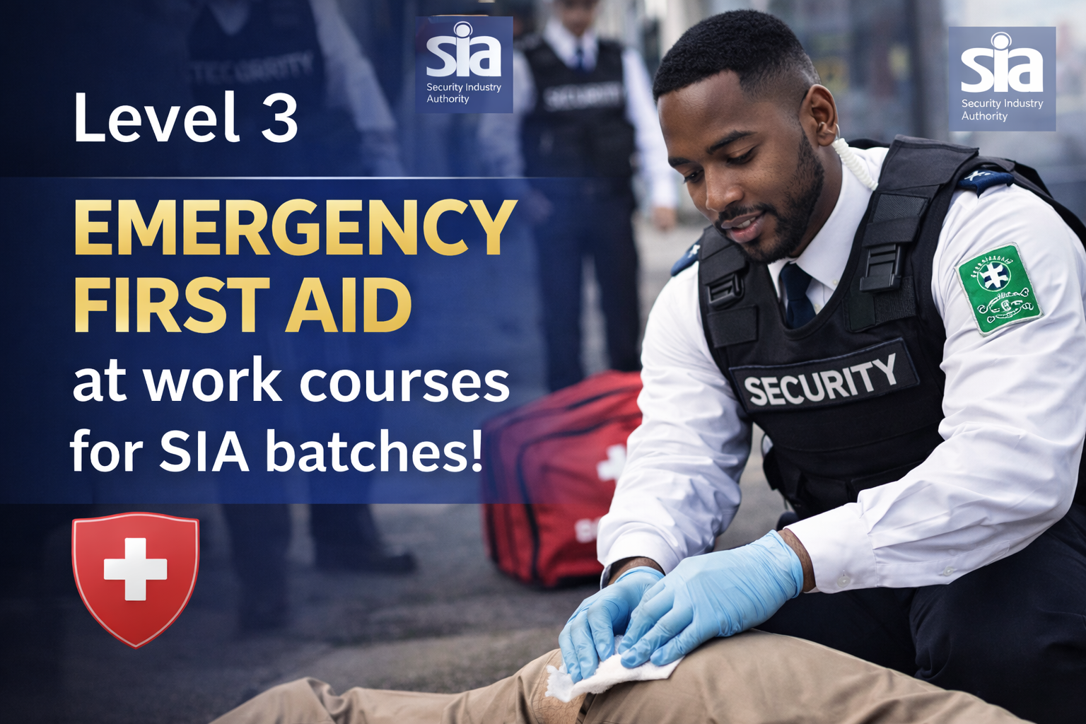 The Level 3 Emergency First Aid at Work course for SIA batches provides essential lifesaving skills required in the security industry. It teaches how to respond effectively to medical emergencies, manage injuries, perform CPR, and provide immediate care until professional medical help arrives. The course also builds confidence in handling critical situations, ensuring safety for both staff and the public in high pressure environments.
